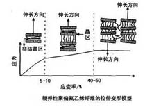 PP) 、聚乙烯(PE)等纖維,雖然在低應(yīng)力下不易變形(因?yàn)樗鼈冇休^高的模量),但在較高應(yīng)力下,特別是在較低溫度下,也有較好的彈性,故這類纖維被稱為硬彈性纖維。