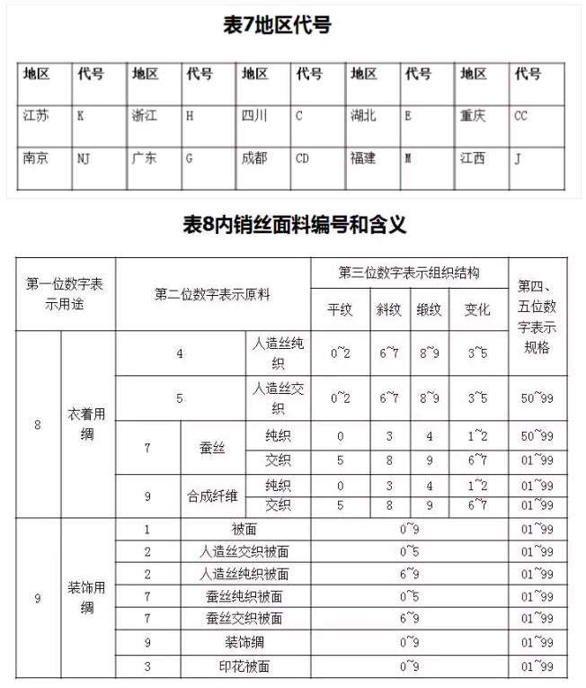 2. 內銷絲面料的編號和含義