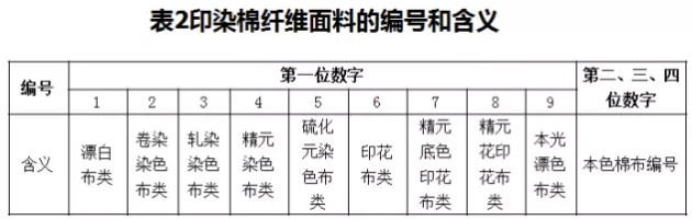 2. 印染棉纖維面料的編號