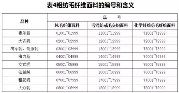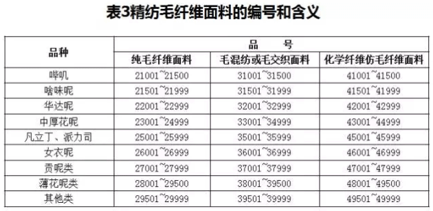 毛纖維面料的編號方法和含義