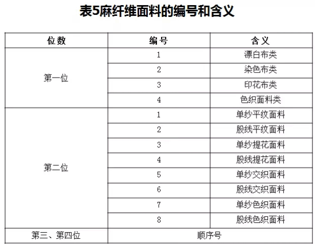 3. 麻纖維面料的編號方法和含義