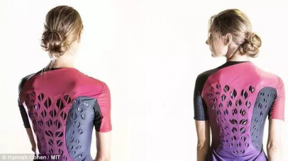 當(dāng)穿戴者身體熱時,“通風(fēng)口”將打開,這樣可以使空氣循環(huán),幫助排出汗液,同時降低體溫;當(dāng)身體溫度降下來之后,“通風(fēng)口”將會關(guān)閉。而開關(guān)“通風(fēng)口”的動力則來自于乳膠織物中內(nèi)置的無害微生物。