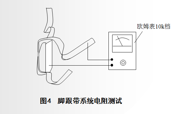 在使用腕帶不方便的情況下,使用鞋束(足跟帶)進(jìn)行人體防護(hù)接地。鞋束(足跟帶)應(yīng)由靜電耗散材料制作,系統(tǒng)電阻一般規(guī)定為5×105