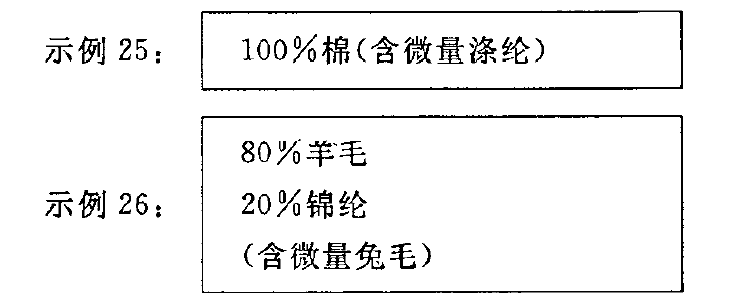 7. 5當(dāng)產(chǎn)品中某種纖維含量鎮(zhèn)≤0. 5%時(shí),可不計(jì)入總量,標(biāo)為“含微量XX”(見(jiàn)示例25和示例26)。