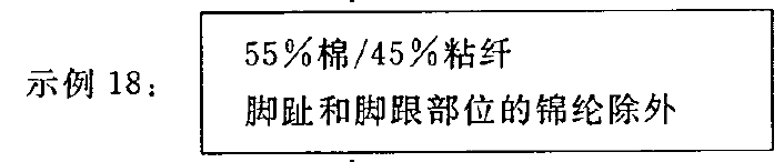 6.11當(dāng)產(chǎn)品的某個(gè)部位上添加有起加固或其他作用的纖維但比例較小時(shí),則應(yīng)標(biāo)出主要纖維的名稱及其含量,并說(shuō)明包含添加纖維的部位,以及添加的纖維名稱(見(jiàn)示例18)。