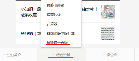 我司為客戶提供導電紗線以及相關面料制品的免費測試服務已開展了四年,受到了廣大用戶的信任與支持,為提高工作效率,方便大家及時查詢測試結果,北方纖維技術部開通了官網和微信公眾號的查詢通道,查詢的具體步驟如下: