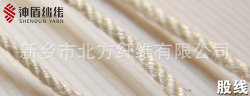 Z捻,股線為S捻。單紗的捻系數(shù)較小,股線的捻系數(shù)較大,紗中纖維與紗軸方向接近一致,由于股線的結(jié)構(gòu)均勻緊密,故股線強(qiáng)度一般大于組成股線的單紗強(qiáng)度之和。