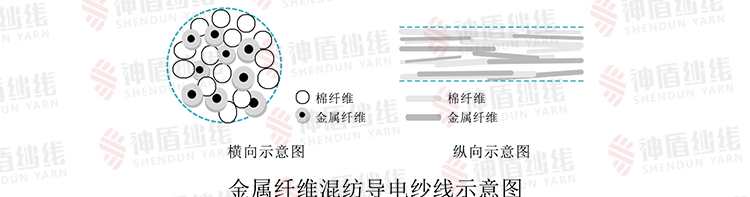 金屬纖維混紡導(dǎo)電紗線,是由金屬短纖維與普通的常規(guī)纖維按一定比例混紡制成的導(dǎo)電紗線,它是一種導(dǎo)電成份非均一性的導(dǎo)電紗線。它以普通的常規(guī)纖維為主體,以金屬纖維為導(dǎo)電成份。金屬纖維在此類(lèi)紗線中的分布,從縱向看是大體均勻的分布,從橫截面看呈隨機(jī)分布狀態(tài),也就是說(shuō)金屬纖維在導(dǎo)電紗線中不可能完全達(dá)到多相均勻分布狀態(tài)。